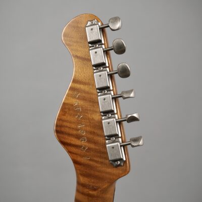 Ausgewählte Esche für den Korpus, ein geflammter – durch’s Roasting schön dunkel gefärbter – Ahorn-Hals und ein klassisches Griffbrett aus Rosewood – und auch die sonstigen Komponenten (s.u.) dieser Maybach sind vom Feinsten!