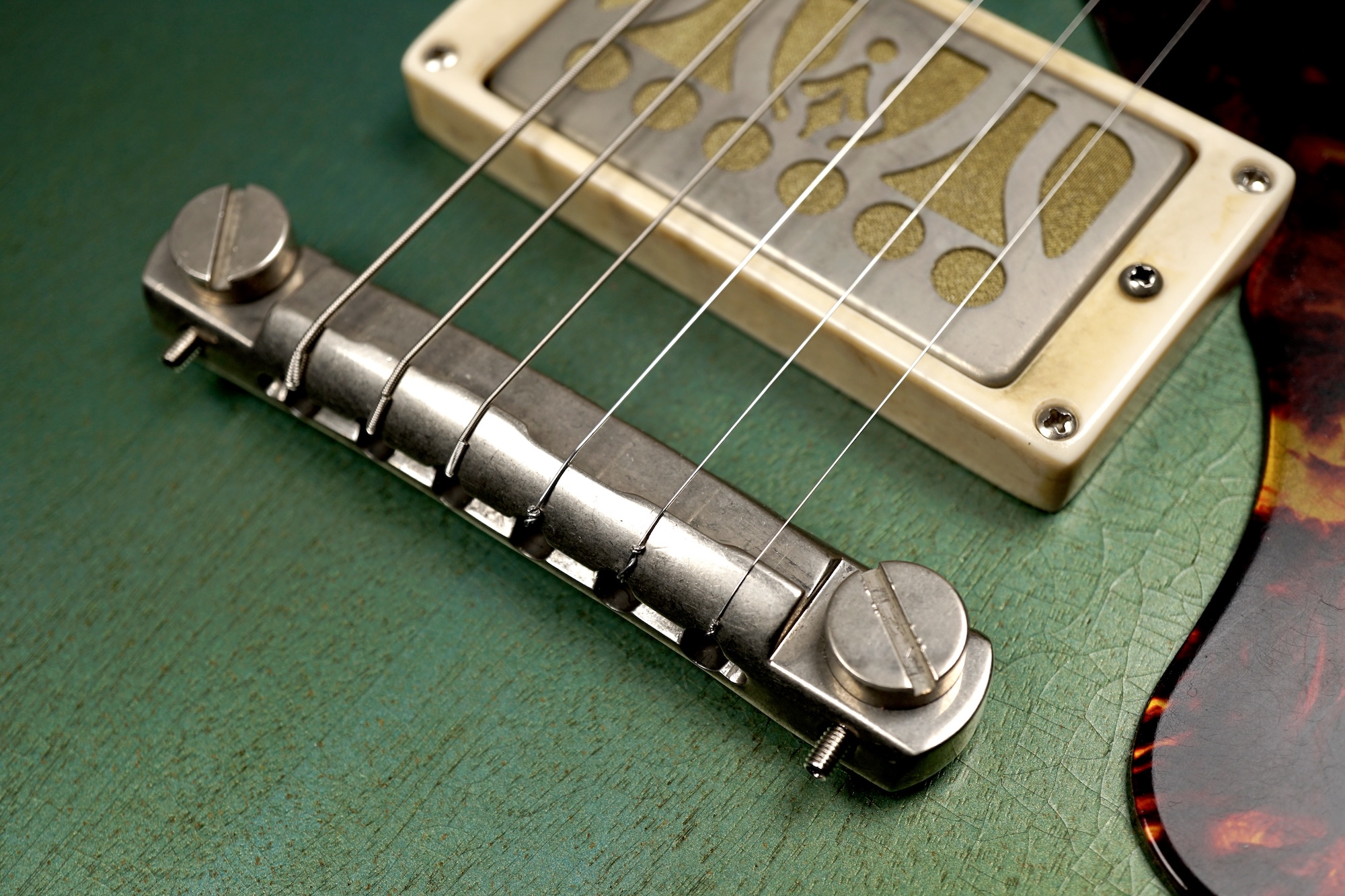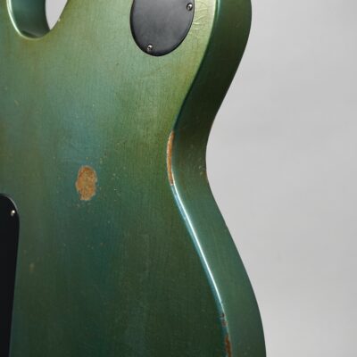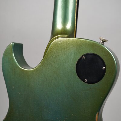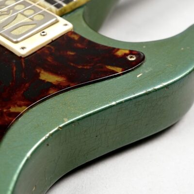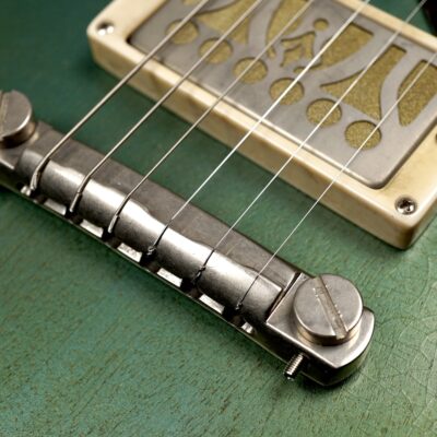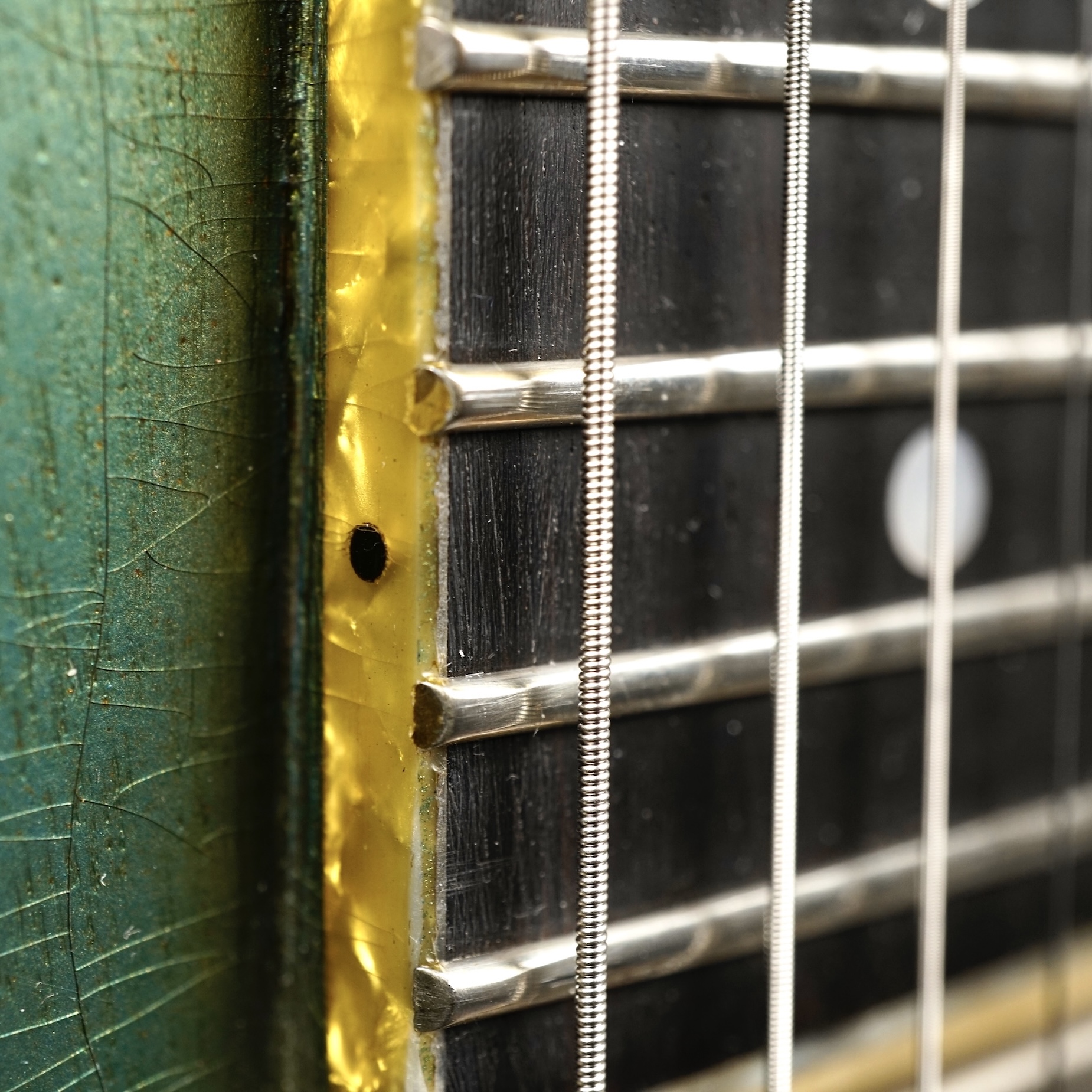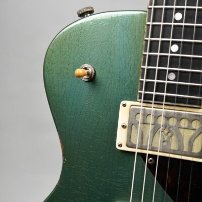 Die Gitarre verströmt jede Menge Mojo und hat alles, was ein von Nick gebautes Instrument ausmacht: Die Lackrisse sind ein Gedicht und sie spielt sich wie ein seit Jahrzehnten eingespieltes Original aus der Gründerzeit des Rock’n’Rolls – Dings & Dongs, Abrieb, Verfärbungen, angelaufene Hardware, vergilbte Tuner – alles da, Rock’n’Roll Schmutz par excellence!