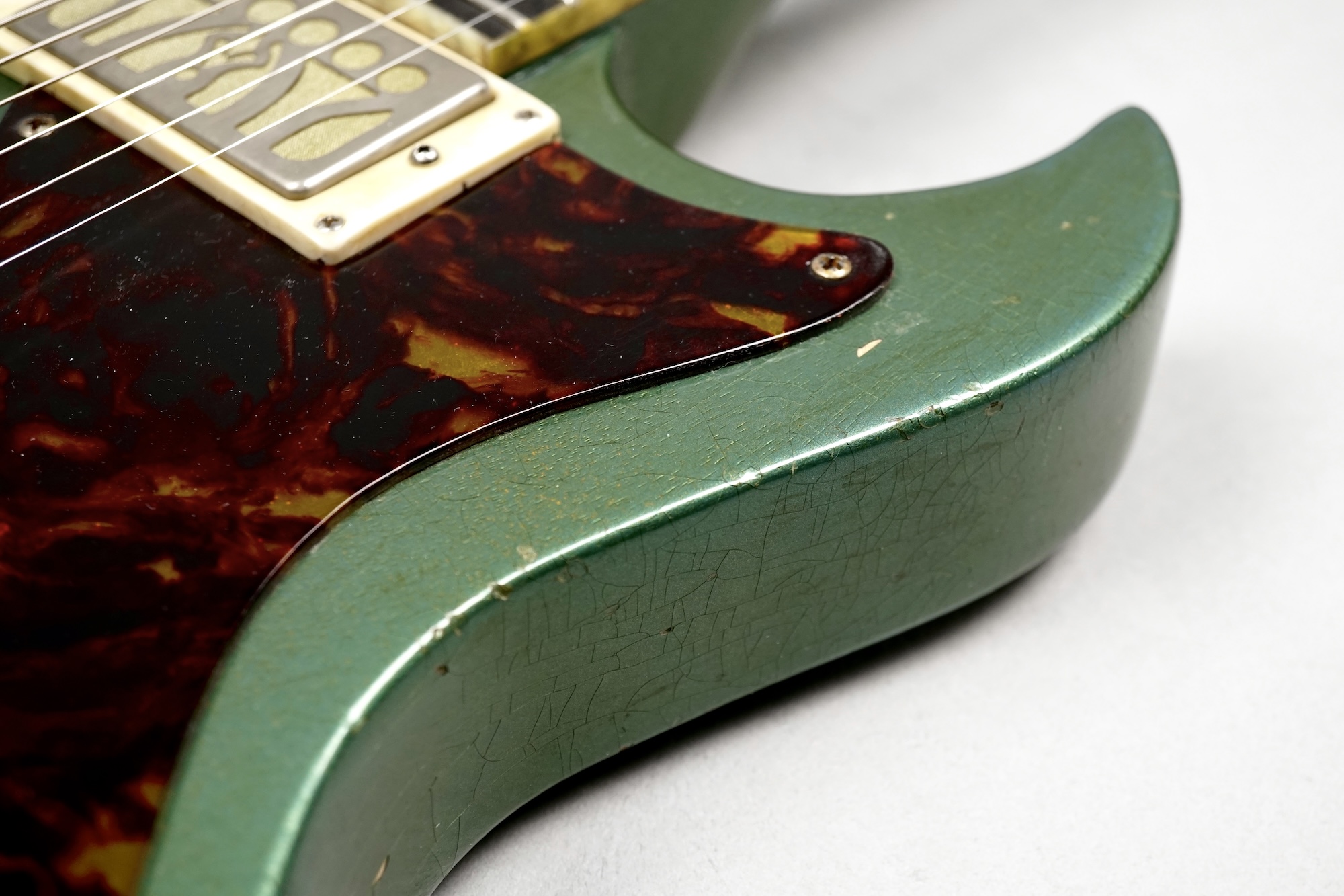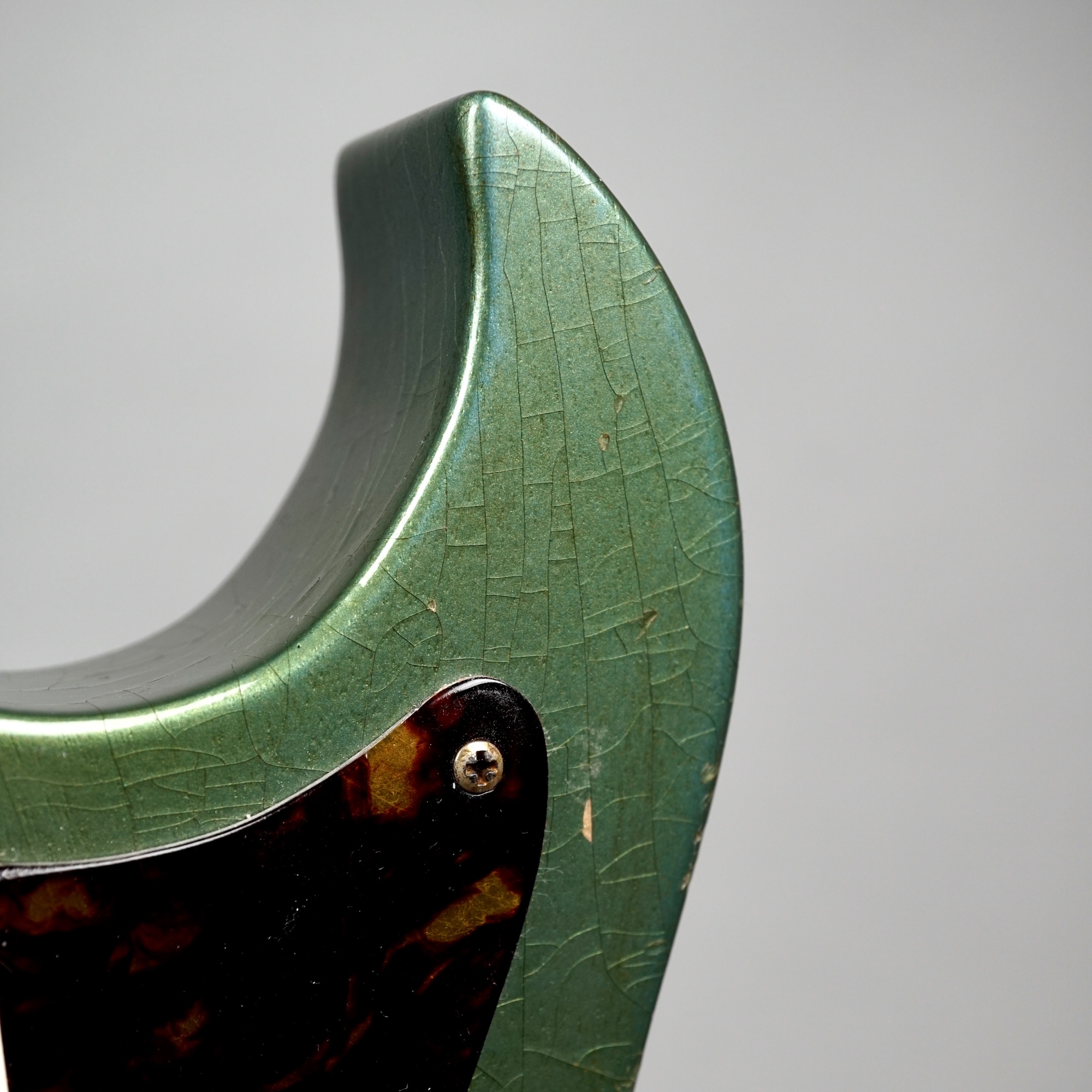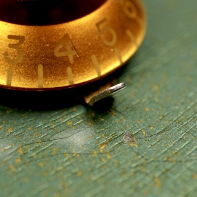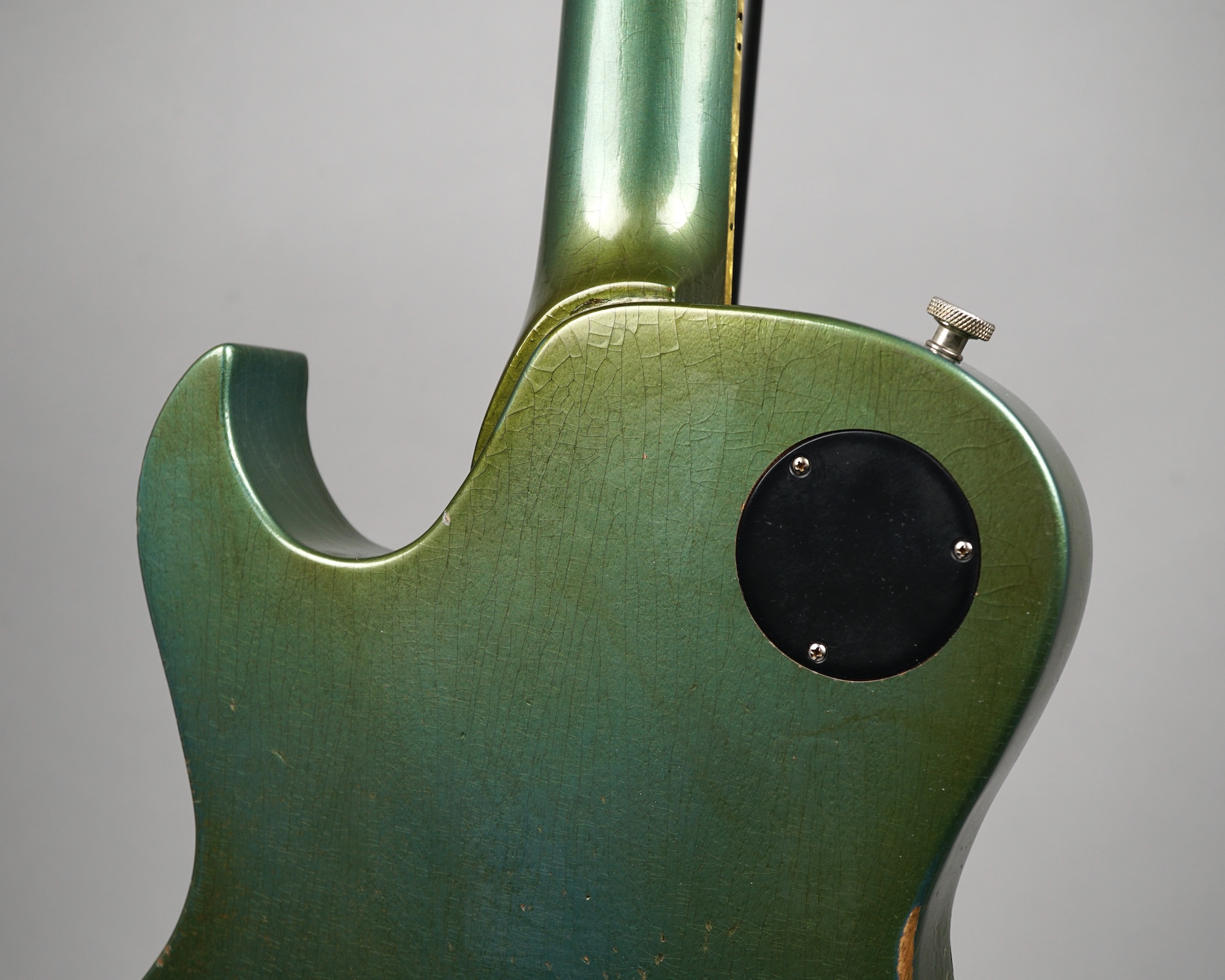 Die Gitarre verströmt jede Menge Mojo und hat alles, was ein von Nick gebautes Instrument ausmacht: Die Lackrisse sind ein Gedicht und sie spielt sich wie ein seit Jahrzehnten eingespieltes Original aus der Gründerzeit des Rock’n’Rolls – Dings & Dongs, Abrieb, Verfärbungen, angelaufene Hardware, vergilbte Tuner – alles da, Rock’n’Roll Schmutz par excellence!