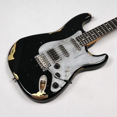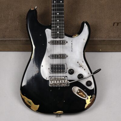 Eyecatcher der Gitarre ist das „moews“-gebrandete Aluminium-Pickguard, welches einen farblichen Kontrast bildet und wunderbar mit der Hardware und den Pick Up-Umrandungen harmoniert.
