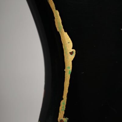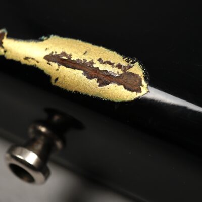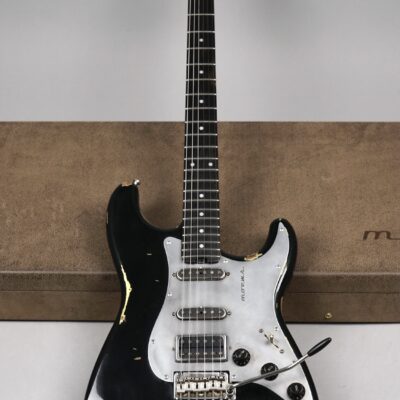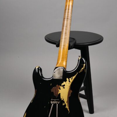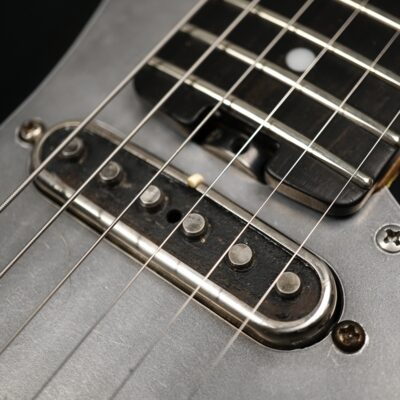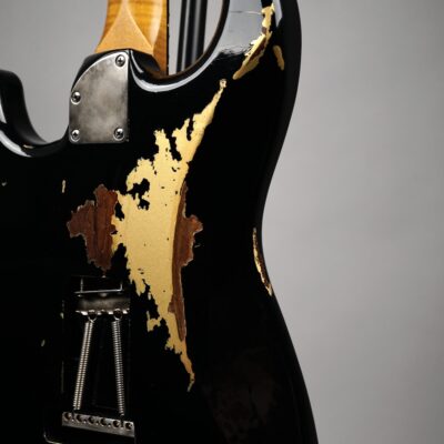 Dieses Salinger-Modell ist ebenfalls Teil der „Gold Rush“-Edition, wobei hier die Gold-Lackierung lediglich das Fundament bildet, welches dann mit einem tiefschwarzen Nitro-Finish überlackiert wurde. Hiernach wurden dem Body gekonnt die Spielspuren eines langjährigen Bühneneinsatzes – zum Teil sogar bis auf’s pure Erlenholz- beigebracht.