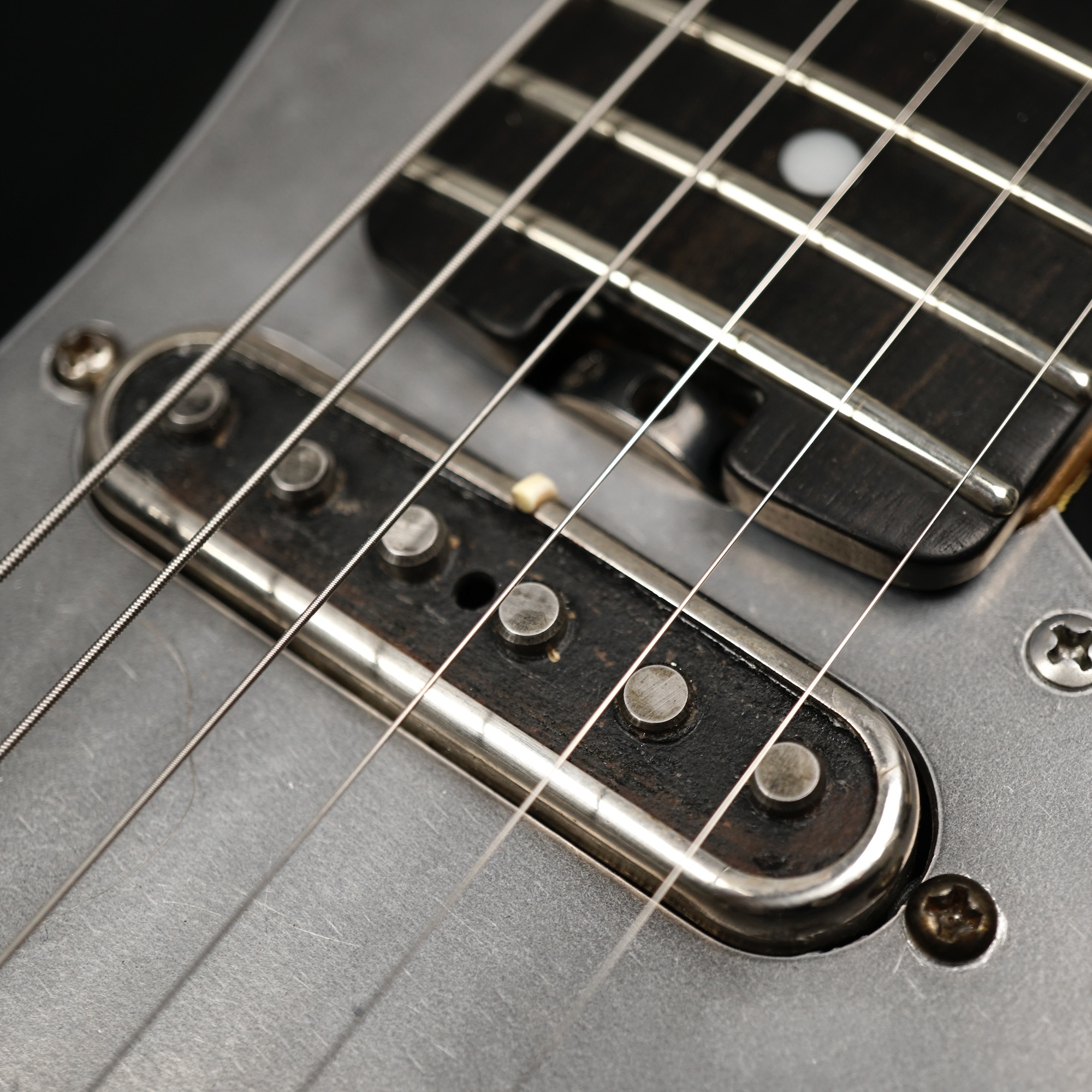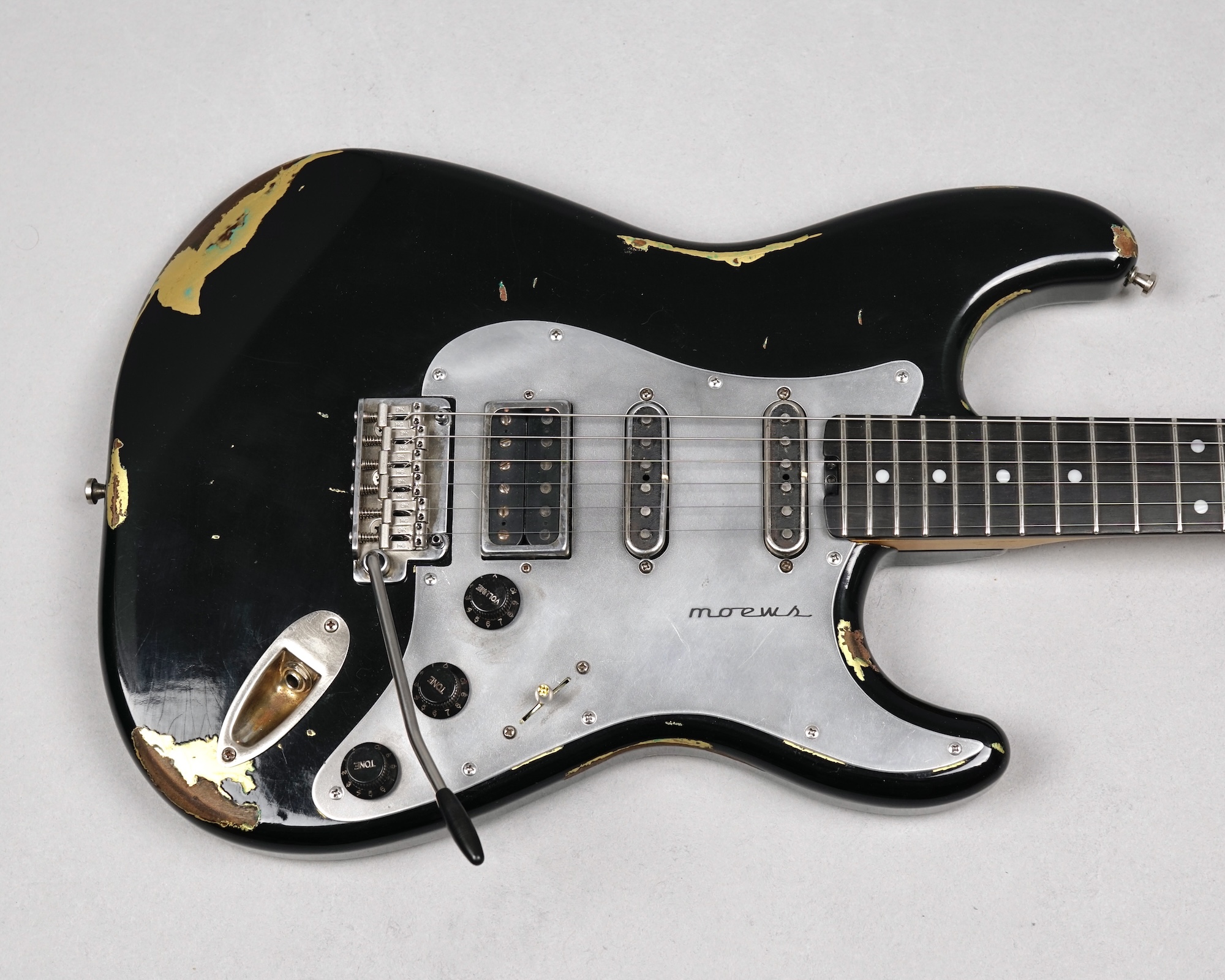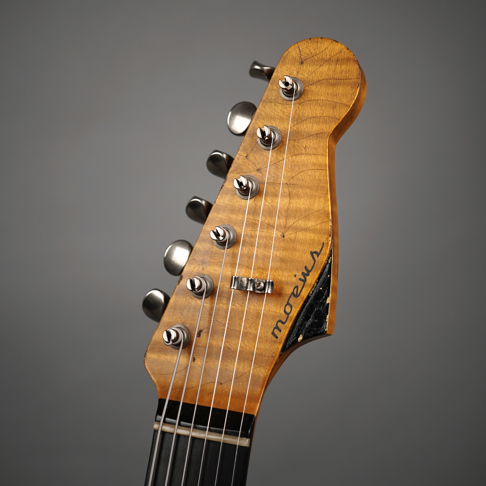 Eyecatcher der Gitarre ist das „moews“-gebrandete Aluminium-Pickguard, welches einen farblichen Kontrast bildet und wunderbar mit der Hardware und den Pick Up-Umrandungen harmoniert.
