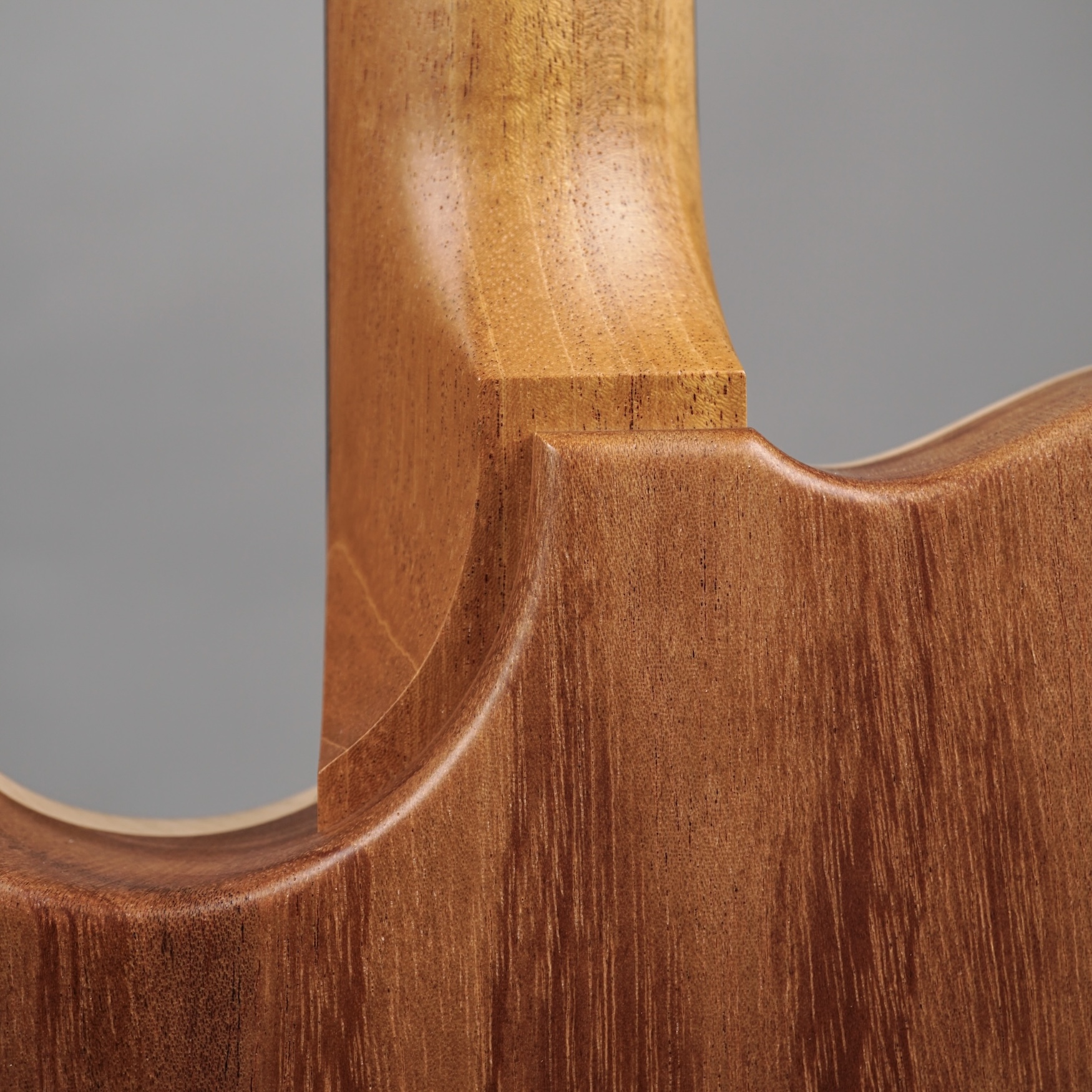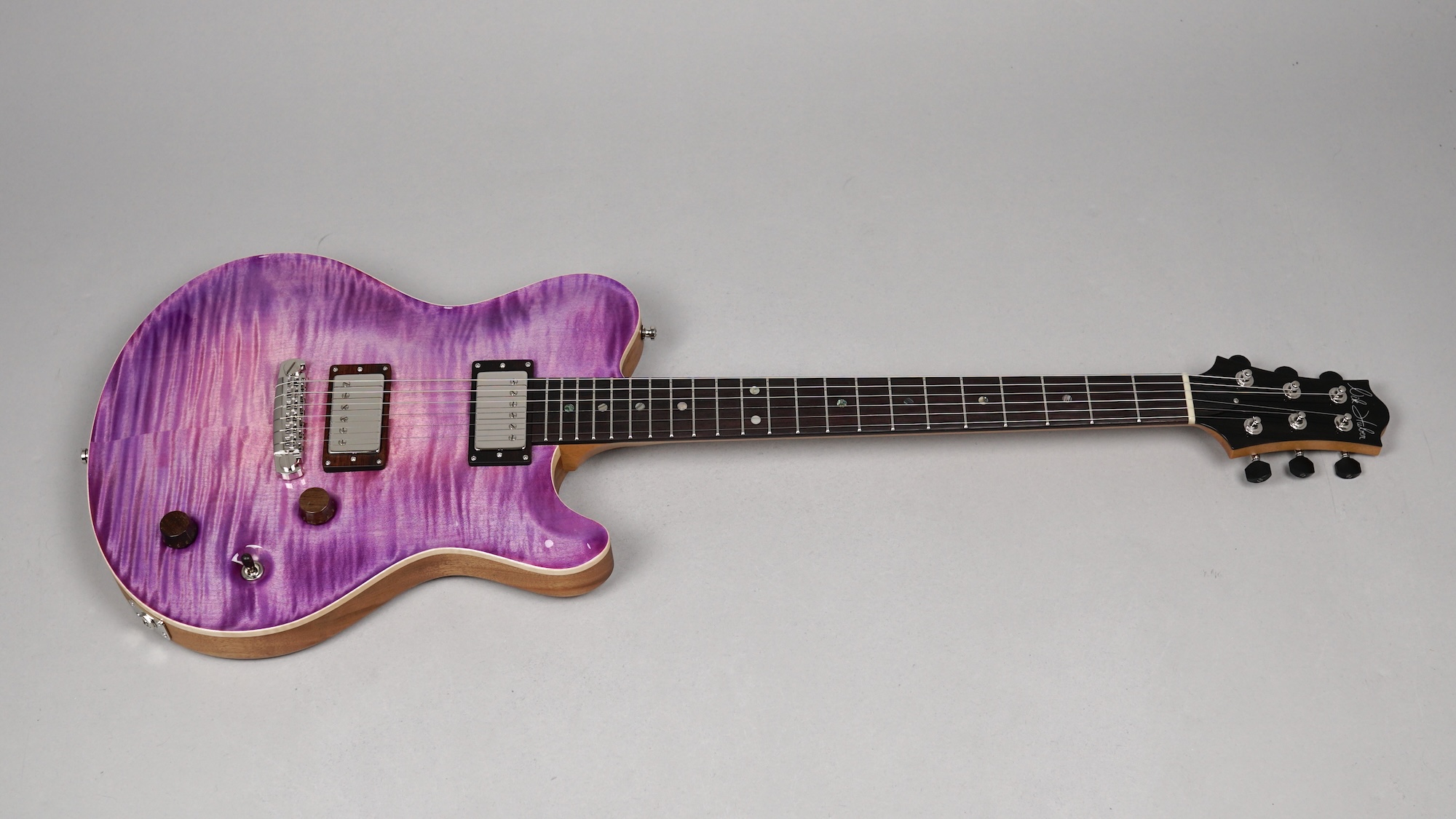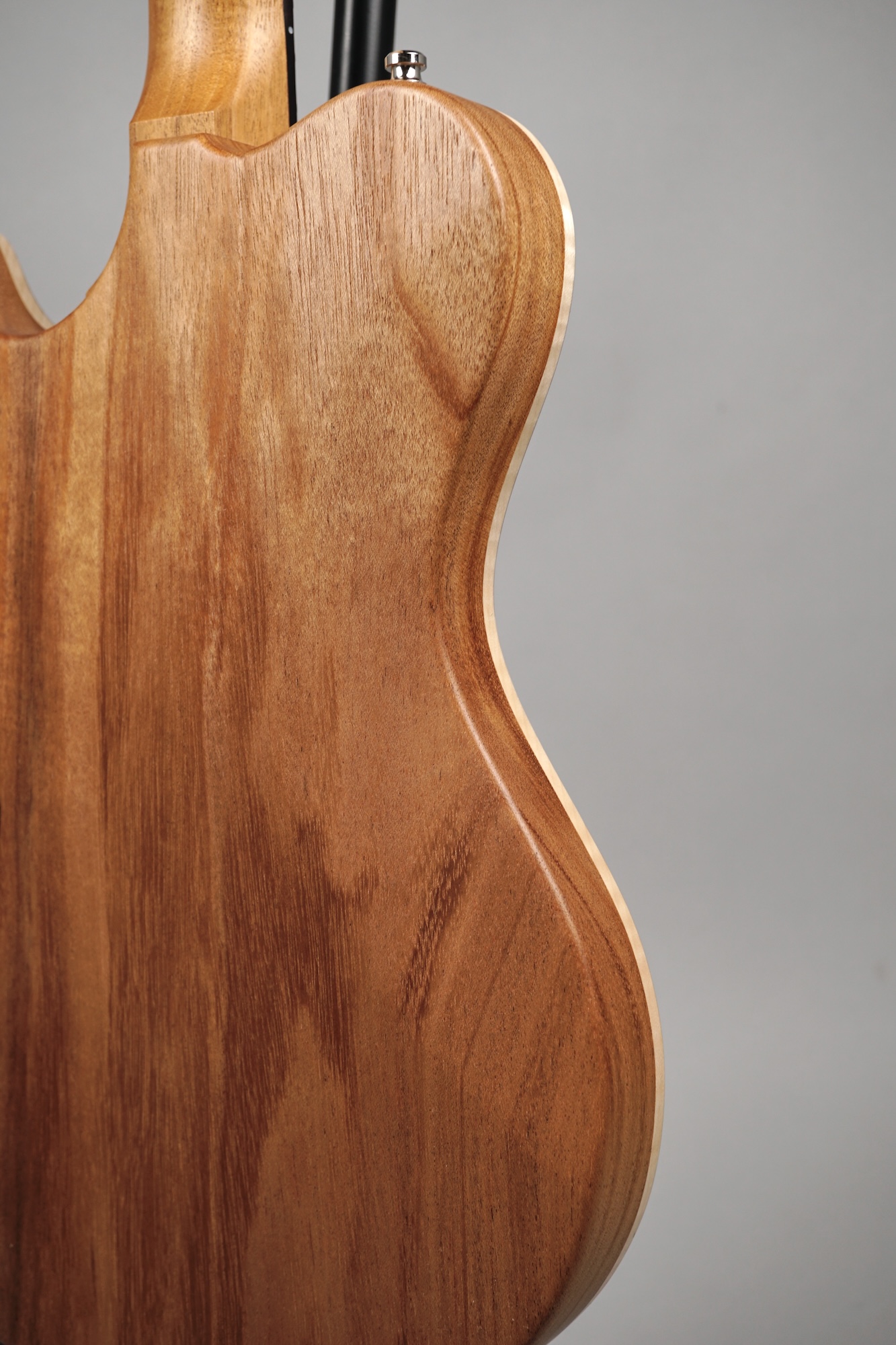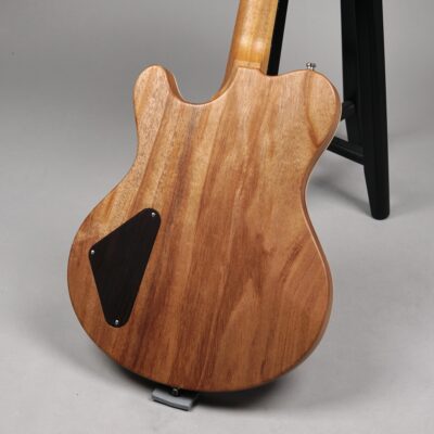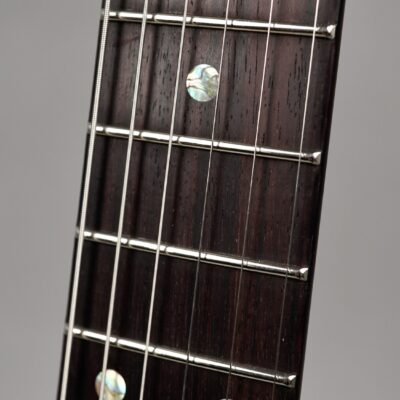Der einteilige Body und der Neck im kräftigen, wohlgeformten Standard Dolphin Shape sind aus von Nik handverlesenem Mahogany, wobei man aufgrund des Open Pore-Finishes die feine Holzstruktur fühlen kann – ein gelungener Kontrast zur High Gloss-Lackierung der Decke. Dies gilt auch für die Volume & Tone-Knobs, die -wie auch die Pick Up-Umrandungen und selbst der Switch Tip- aus East Indian Rosewood sind – schöne Details, welche die Klasse des Instruments unterstreichen.