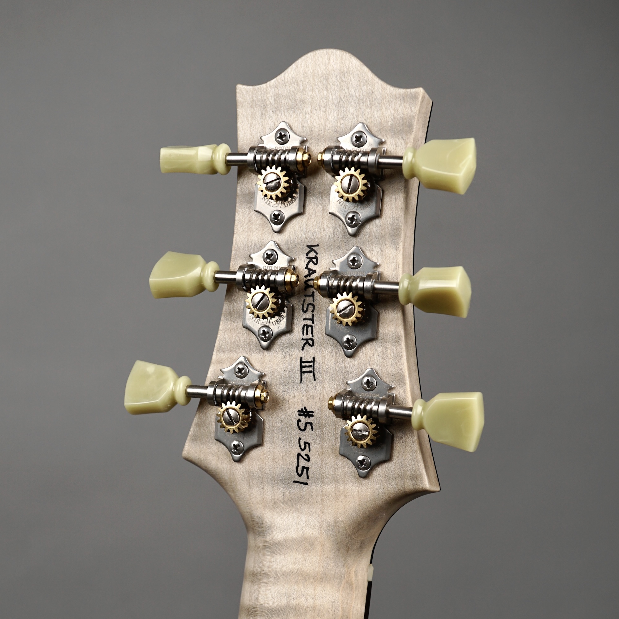 Diese wundervolle Krautster III ist etwas ganz Besonderes: Im Gegensatz zur Standardausführung seines Erfolgsmodells hat Nik diesem Exemplar einen Swamp Ash-Body spendiert und zwar mit einem Natural Open Pore-Finish, welches die typische Maserung dieses großartigen Klangholzes optimal wirken lässt.