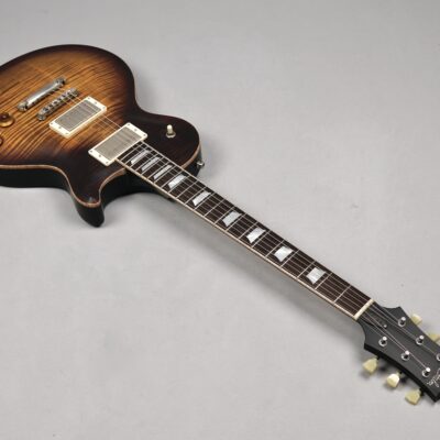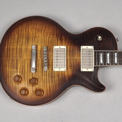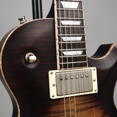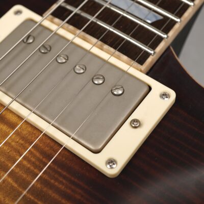 Zum Spielvergnügen trägt auch der Mahogany-Hals mit dem 59er Orca Standard-Shape bei, der wunderbar in der Hand liegt. Das „Brazilian Rosewood“-Griffbrett mit den Mother of Pearl-Crown Inlays ist mit einem perfekt gearbeiteten Flame Maple-Binding eingefasst. Der ergonomische Hals-/Korpus-Übergang ermöglicht eine optimale Bespielbarkeit in den höheren Lagen.