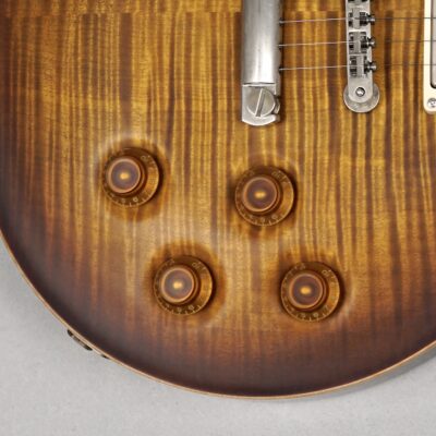 „Exceptional“ – mit diesem Prädikat ist diese „Orca ’59“ in jeglicher Hinsicht angemessen beschrieben: Angefangen bei der „Exceptional Flame Maple“-Decke, die mit einer außergewöhnlich schönen Maserung aufwartet, deren Tiefenwirkung sich aufgrund des Double Stain -Treatments noch verstärkt. Dann das tolle Vintage-Burst auf der Rückseite von Body und Neck.