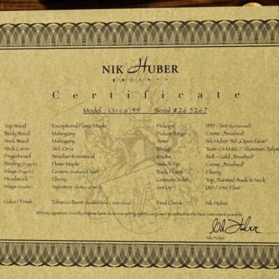 Nik Huber: Orca ’59 „D.S. Tobacco Burst“(Exceptional Top & Brazilian RW FB)