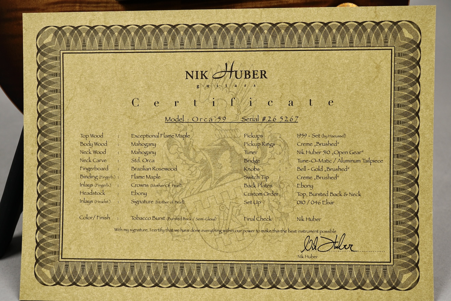 Nik Huber: Orca ’59 „D.S. Tobacco Burst“(Exceptional Top & Brazilian RW FB)