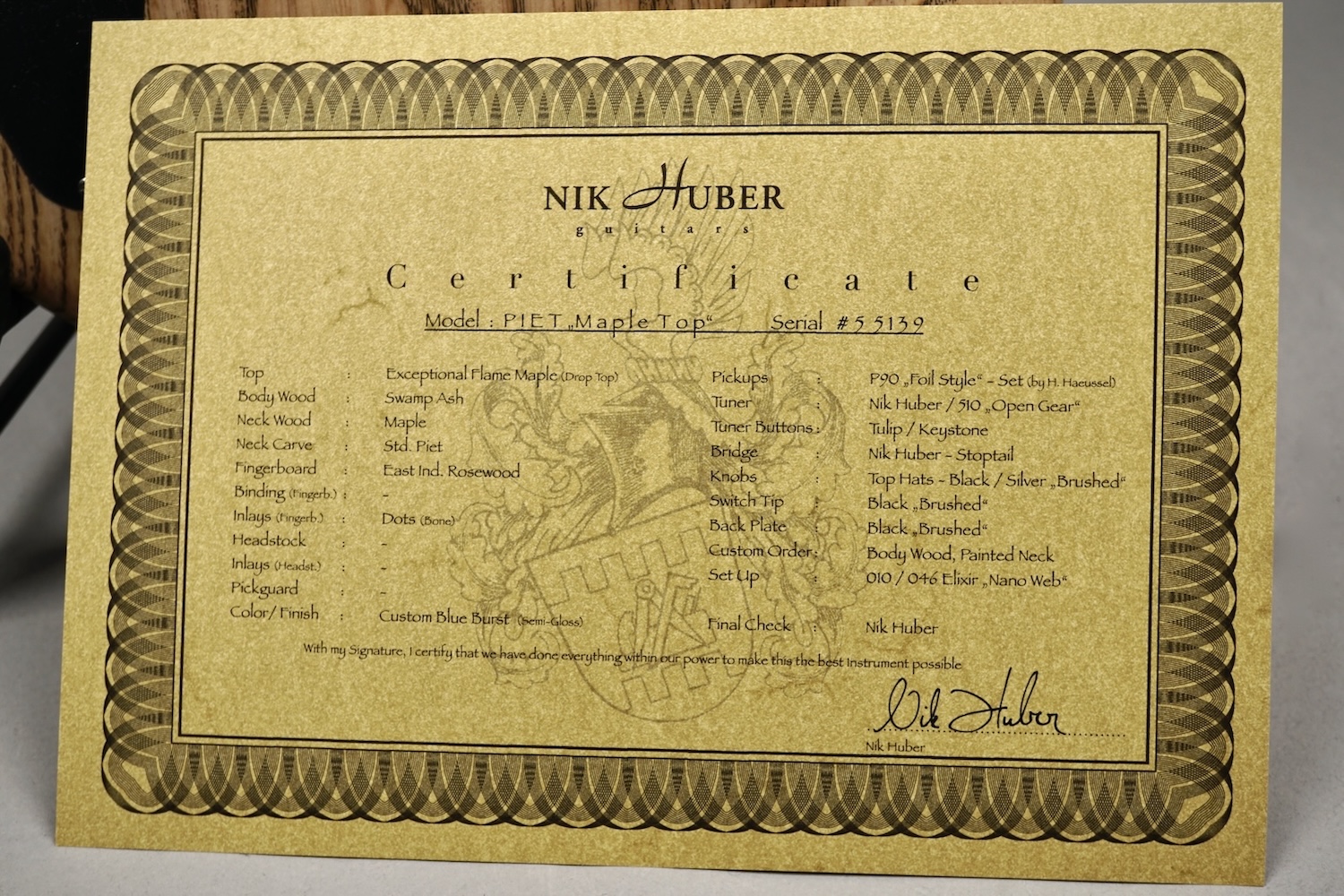 Nik Huber: Piet „Custom Blue Burst“ (Exceptional Flame Maple Top)
