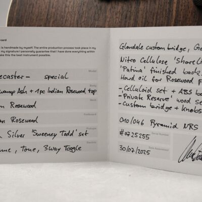 Fazit: Diese außergewöhnlich schöne „Lovecaster-Special“ ist perfekt für alle Player, die auf der Suche nach einer von Meisterhand gebauten Semi-Hollow T-Style aus erlesenen Hölzern und dem besonderen Tone sind. Unbedingt eine Empfehlung!